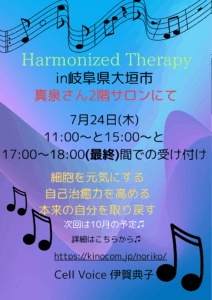 少し、ハーモナイズセラピーのお話しさせてくださいませ。